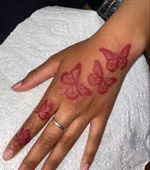 Butterfly hand tattoo red. Lets find out what the meanings are and which areas of the body lend the most to the tattoo. Red butterflies tattoo on hand. Plum blossoms are small densely blossoming pink.